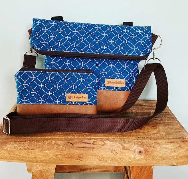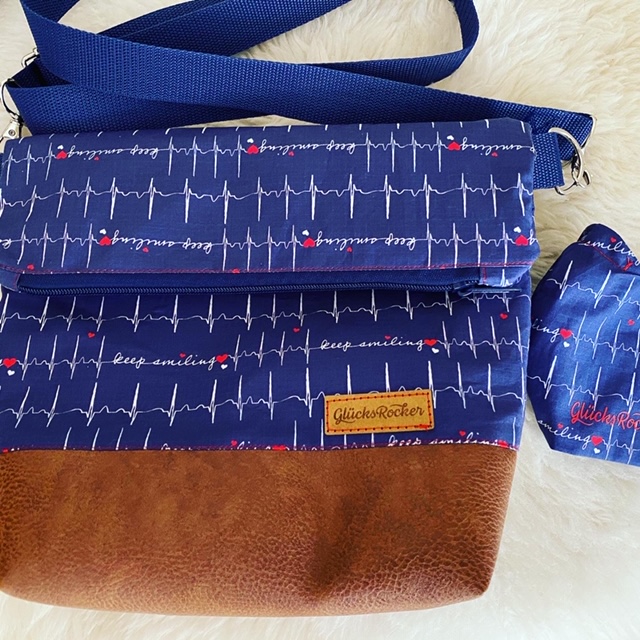 An den Seiten befinden sich D-Ringe, an denen Du entweder Deinen Gurtband von einem Deiner Glücksrockertaschen befestigen kannst oder ich nähe Dir einen passenden Gurtband dazu.