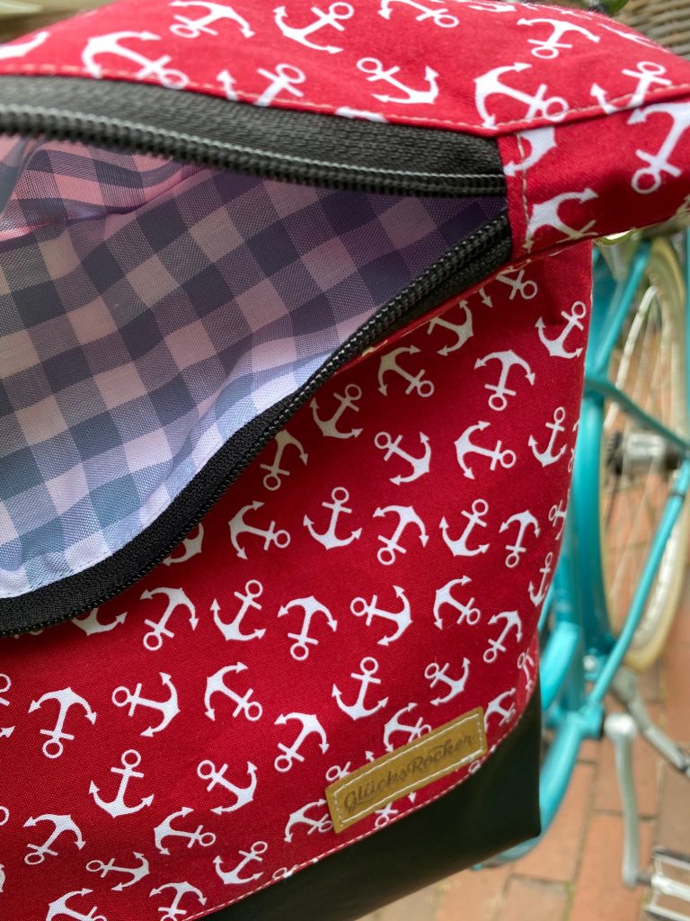 Auf die Rückseite nähe ich Dir Klettverschluss ein. Damit ist die Tasche ganz einfach an Deinem Fahrrad anzubringen und wieder zu lösen.